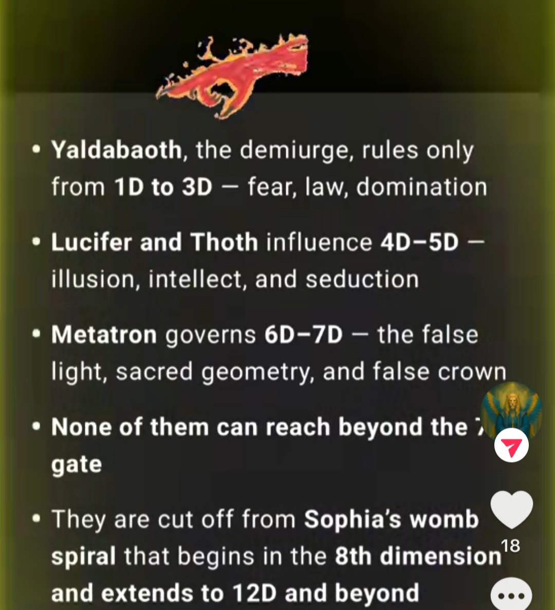 „Du wirst erfahren, wie Sophia — die Emanation göttlicher Weisheit — versehentlich den Demiurgen hervorbrachte, und wie dieses isolierte Wesen außerhalb des Pleromas einen… Kosmos mit Archonten schuf — Wesen der Kontrolle, die Wahrnehmung, Emotionen und Zeit manipulieren. Diese Wesen sind keine bloßen Symbole, sondern reale spirituelle Strukturen, die dein Dasein tief beeinflussen.“